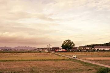 ローカル鉄道の夕景 徐々に日が沈んでいき、雲が薄っすらと赤みがさしてきました。これからの季節は撮影に最適です。撮影に励みます。