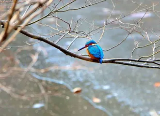 いつもの餌場の池も凍り付き、少なくなった餌場でじっとチャンスを待っている冬のカワセミ