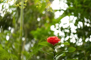 圧倒的な緑のグラデーションの中に、鮮烈な「赤」を配置しました。 開放F値の滑らかなボケ味を活かし、背景の奥行きと空気感を表現しています。 ポツンと咲くその姿に、凛とした生命力を感じていただければ幸いです。