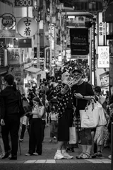 お買い物記念 いつでも人が一杯の原宿竹下通り。楽しくお買い物が出来た、仲良しおじさまコンビ、記念写真をパチリ