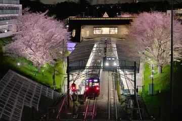 夜桜の見える駅