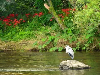 鷺と彼岸花 彼岸花を背景に、川に佇む鷺を撮りました。 Z7Ⅱ