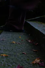 「秋色チャレンジ」曲がり角の秋 買い物ついでにカメラを持って近くの公園へ、道路脇に落ちた枯れ葉を撮っていたらケミカルローリー車が曲がってきました。タンクや改装はステンレスの車でした。その車体に公園の黄葉が写り込んでいました。^^