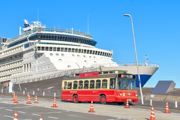 豪華客船とあかいくつバス