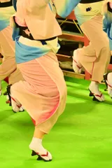 踊る足先 阿波踊りは観覧場の連だけでなく、街中で自然発生のように踊りの輪ができて、老若男女が楽し気に踊りまくります。それを撮るのが楽しくて、毎年街中を歩き回っています。何時もしっかり見るポイントは下駄をはいた足先です。地面に突き刺すように立つ、そのつま先の一点で激しい踊りをささえる様が、なんともいえぬ美しさで