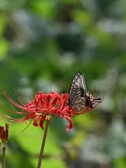 ナミアゲハとヒガンバナ 今年初めて、ナミアゲハとヒガンバナのショット撮れました。