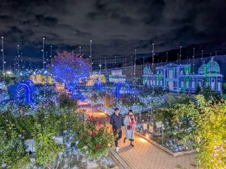あしかがフラワーパークにて。薔薇とイルミネーションの共演が素敵なエリアでした。
