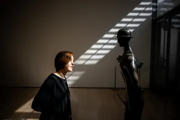 モディリアニにご挨拶 ニューヨーク、MoMAでモディリアニの作品を鑑賞している奥さんを撮りました。ちょうど斜めの光が壁に落ちていい感じでした。