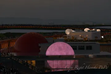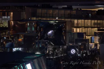 夜の大阪万博、落合陽一「null²」 一瞬「何が何だか判らない」物体だったが、じっくり見てるとなかなか面白い中に入りたかったが『無理²』