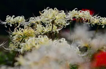 美人でしょう 今年も彼岸花が満開となりました。流石丈夫な花ですね。一斉に見事に咲き、しかもやや遅れて咲く白が一緒に開花して、人間の猛暑の心配など関係なしで安堵しました。撮影方法もマイチェンで10頭身の茎を主役にしてみました。右下の草も大事なポイントですから70~200のレンズをMFでピントを合わしますから、モニタ