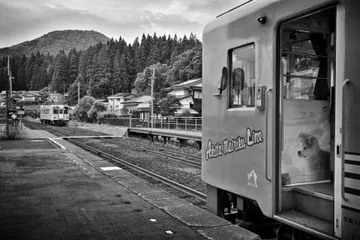 マタギの里へ(4枚組写真) 秋田内陸縦貫鉄道の沿線に、狩猟を生業としていたマタギの里と言われる地域があります。天候が悪かったのですが、逆にモノクロにすることで雲の陰影を引き出し、山にかかる霧も表現できたかと思います。