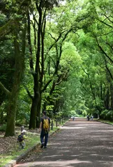 植物園で見かけた親子。子供さん何かを見つけた?ここは宝の山!