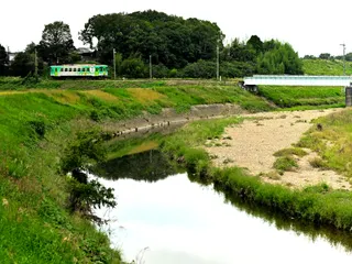 秋のローカル鉄道その3 鉄橋を渡る前に撮った一枚背景の空色が残念だったのでトリミングしました。本来なら縦構図の画だったのですが。再度、チャレンジします。