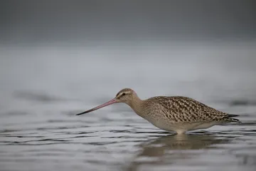 「朝の陽ざしをあびて」オオソリハシシギ 日の出直後の柔らかい光をあびて、嘴の色がとてもきれいに見えた。