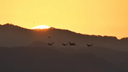 鹿児島県出水市の鶴の飛来地!明け方、日の出と一緒に撮りました。令和5年の初日の出です。D500この時!!鹿児島テレビが取材に来てインタビューされました😅トーク番組の最後の所で使いますと言われましたが、放映される時間には出掛けて見る事が出来ませんでした。😅