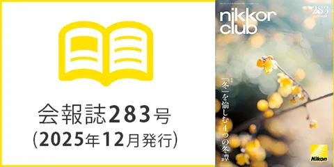 会報誌283号(2025年12月発行) 表紙Yuri特集冬を愉しむ4つの冬譚写真・解説 櫻子/中野耕志/成澤広幸/Yuri連載Photography Portfolio Vol.7大西みつぐインスピレーション 第七回『日本画家 田中一村』三好和義多彩な現場でもその実力を発揮するニッコールレンズの魅力に迫るポートレート× NIKKOR Z