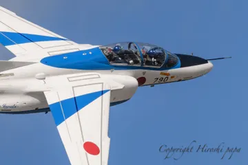 ありがとうございます 航空祭本番は晴れたり曇ったりで、空の変化が面白かったです。 現像は基本ホワイトバランスを調整するくらいで「色」はいじらないので、ほぼ見たままの景色です。 曇り空の中、ツヤツヤに磨かれたブルーインパルスの機体が光ってたので「ここ!」とシャッターを切ったショットです。
