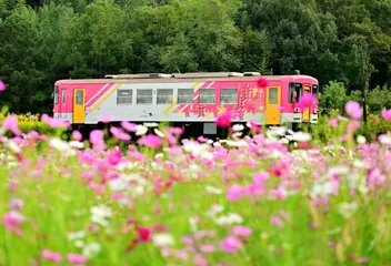ローカル線とコスモスと コスモスと北条鉄道を撮ってみました。