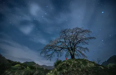 NEW ✨️星を纏う一本桜🌸 先日訪問した満開の『上発知のシダレザクラ』raw現像しました😊息を呑む美しさですね~❗️桜の上に北斗七星が綺麗です❗️お地蔵さんの赤がアクセントになってます😊撮影場所:上発知のシダレザクラ撮影日時:2026年4月18日撮影機材:Z 6III + 『NIKKOR Z 14-30mm f/4 S』+三脚