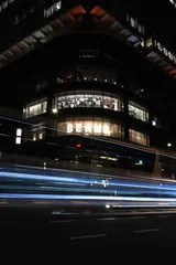 夜を切り裂くビーム 無数の光が、眠らぬ都市を貫いていく。鉄とガラスに囲まれたショーウィンドウは静止し、その前を時間だけが、容赦なく流れ続ける。 夜はまだ終わらない。光が切り裂くその瞬間まで。