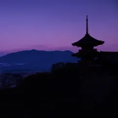 夜明け前 清水寺早朝参拝時のショットです。朝焼けが神秘的でした。(2023.11撮影)