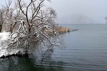 湖畔の雪