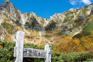 あんなとこ登れるんかい 真ん中の一番凹んでいるところが登山道。下から見ると表題通りの感想ですが、実際にそこまで行ってみると、つづら折れなので、下から見るほどではないです。拡大すると人が見えます。 D85050 f/1.4G