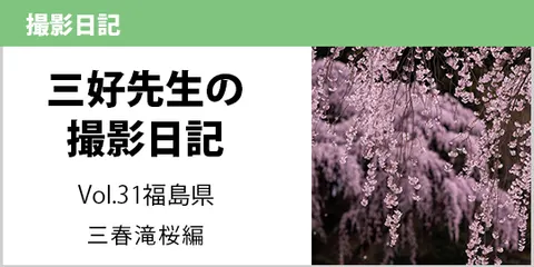 三好先生の撮影日記<Vol.31> 福島県 三春滝桜 春、桜のシーズン到来ですね。今年は桜の開花予想が早くて、桜撮影の準備を巻きで考えています。それにしても、日本人の心をときめかせる桜。俳句の季語で花といえば「桜」を意味するように特別な存在。そんな桜の撮影、全国を回っていますが、何度も飽きることなく通っているのは、福島県の名所の数々。 今回ご覧いただく