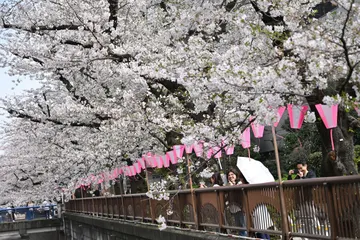 お花見 2026,3,30午後晴天、 目黒川の桜は満開、お花見の人たちの笑顔が素敵でした。