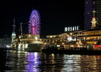 神戸「MOSAIC」 のクリスマスマーケット夜景とトワイライトクルーズ船