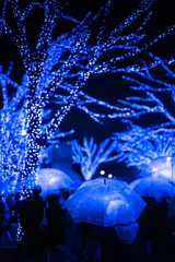 Blue Winter Fantasy クリスマスイブの夜、街を埋め尽くす青い光。雨に濡れたビニール傘がイルミネーションを反射して、まるで魔法にかかったような景色でした。寒さを忘れるほど美しい、幻想的なひととき。