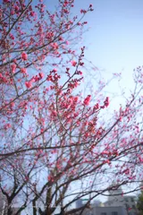 くれなひ狂乱(大阪・茶臼山) つぼみが次々と開き始めた紅梅を冬の晴天の明瞭な空気感までもオールドニッコールがきっちり捉えてくれました。本日(1/18)撮影。 Z5 + NIKKOR-H Auto 28mm F3.5 + ピクコン:スタンダードで撮影、NX Studioでフレキシブルカラーに変更して調整、Affinity