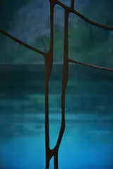 触れられない奥行き。そこにあるのは風景ではなく、風景画。ガラス一枚がつくる、二重の世界。