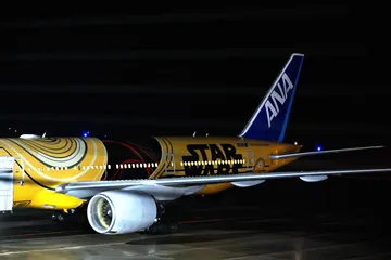 駐機作業中のANA:Cー3PO 通称「たくわん」と呼ばれた、スター・ウォーズのキャラクター「Cー3PO」をモチーフにしたANAボーイング777機が今月9日の飛行を最後に運行を終えました。多くのファンに愛された機体でした。約10年間の永い間ありがとうございました。(鹿児島空港にて)Nikon Z9 NIKKOR100-40