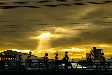 鉄道員 撮影していたら、たくさんの鉄道員が作業しにやってきました。その姿が、夕日に映えて逞しく見えました。