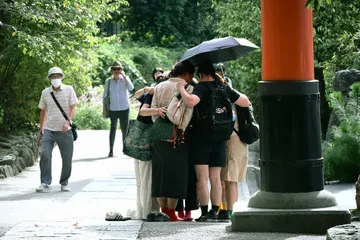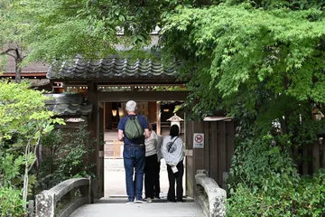 スクラム ご近所散歩。宇治上神社の鳥居前。よくわからんけど、インバウンド?の女子集団が円になって靴を脱ぎだした。これはなんだろう・・・^^;声を上げずに静かにスクラムを組んでいた。謎である。Nikon Z50Ⅱ Z DX18-140mmF3.5-6.3VR