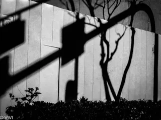 影(チャリ) 影が織りなすストーリー 颯爽と走り去る自転車。負けじと影もついていきます