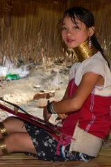 タイ首長族 タイの首長族の村で。バックにゴミが散乱しているが、ポートレート写真じゃなくて、観光記念写真ということで。