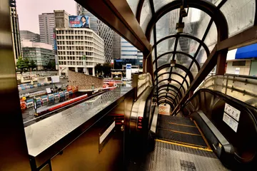 エスカレーター ニコンプラザ東京 ショールームのある新宿エルタワーに行く歩道橋に登る小田急百貨店横のエスカレーターです。