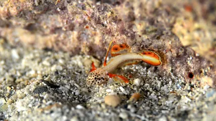名 称:ホムラハゼサイズ :約10mm機 材:Z8+NIKKOR Z MC 105mm f2.8 VR S+Nauticamハウジング撮影場所:石垣島北部撮影日 :2025年11月15日 メインはホムラハゼ サブはホムラマダ 1本のダイビングで、ホムラダマシとホム