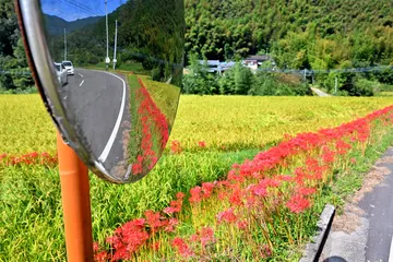 ロードミラー NikonZ9 Nikkor24-120mm f/4S1/500 f/5.6 ISO400ロードミラーに映った彼岸花を組み合わせて撮影しました。