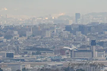2025/09/20の伊丹空港逆風運用(2025/09/20)滑走路西側から侵入後、豪快に右周りの180度旋回(Uターン)後、滑走路を目掛け一直線に高度を落としていく最終アプローチ。通常の滑走路運用では撮る事の出来ない多数の貴重なショットをゲット!伊丹市上空を降下中背後に見えるのは芦屋のマンション群