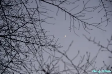 月は見ていた とある冬の夕暮れこんな寒い時期でも、桜はしっかり蕾を膨らませ、春を待ちわびているんだなと、ふと見上げた空に三日月月も桜を見ていた