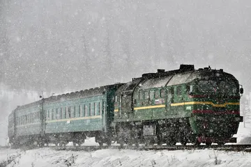 雪の中をゆくソ連製の機関車