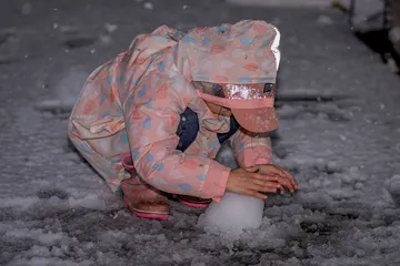 雪が降った日、孫が寒い中冷たい雪遊びに夢中でした。