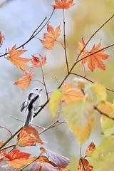 秋のエナガ🌙🕊️ 北海道は、平地でも もうすっかり秋の装い🍁🍂下半期の始まりですネ😊 朝の空気が少しキリリとした冷たさを感じながら、自転車🚲で近くの公園⛲️まで朝さんぽ👣🐾シマエナガさん🕊️も、秋めいた林道🍁を楽しんでいる様子でした💖👋😉