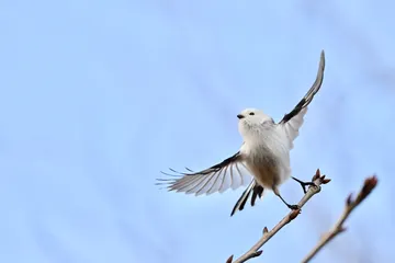 エトワール 〜妖精のバレエ🧚🩰💫〜 冬季❄️のやわらかい陽射し☀️の中で、枝🌿から枝🌿へ "踊り子🩰💫" のように舞う "シマエナガさん🕊️"🥰"雪の妖精❄️🧚❄️" の名に恥じない 雪❄️にも負けないくらい真っ白な耀き✨🧚✨を纏っていました🌟❗️😌👍