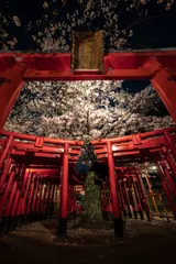 桜無双 闇を穿つ薄紅の雲、連なる朱の門。この春、比肩する者なき「桜無双」の絶景なり。