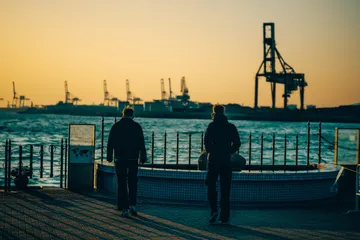 港の兄弟 おそろいの格好をした、すらりとしたインバウンドの青年(少年?)が2人。寒風のなか、さまになっていました。兄弟かな?■撮影日:2026年1月24日(土)■カメラ:Z8■レンズ:Z50mm f/1.8S■f/1.8 1/8000秒 ISO100■Lightroomで現像