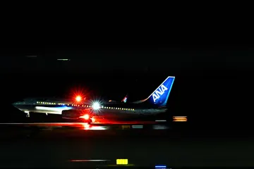 テイクオフ 夜の空港。飛行機のライトや滑走路の誘導灯がとても綺麗でした。(鹿児島空港にて)Nikon Z9NikkorZ100~400mm f/4.5-5.6 VR S1/30 f/7.1 ISO6400